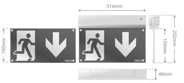 Self-contained Dynamic edge-lit exit sign utilising an LED light source. Pastic body suitable for use in ceiling or walls. ISO legend illumination compliant with the requirements of EN1838. Luminaire compliant to EN60598-2-22, ISO 30061, ISO 3864-1 & ISO 3864-4. Pictograms format compliant to ISO 7010.